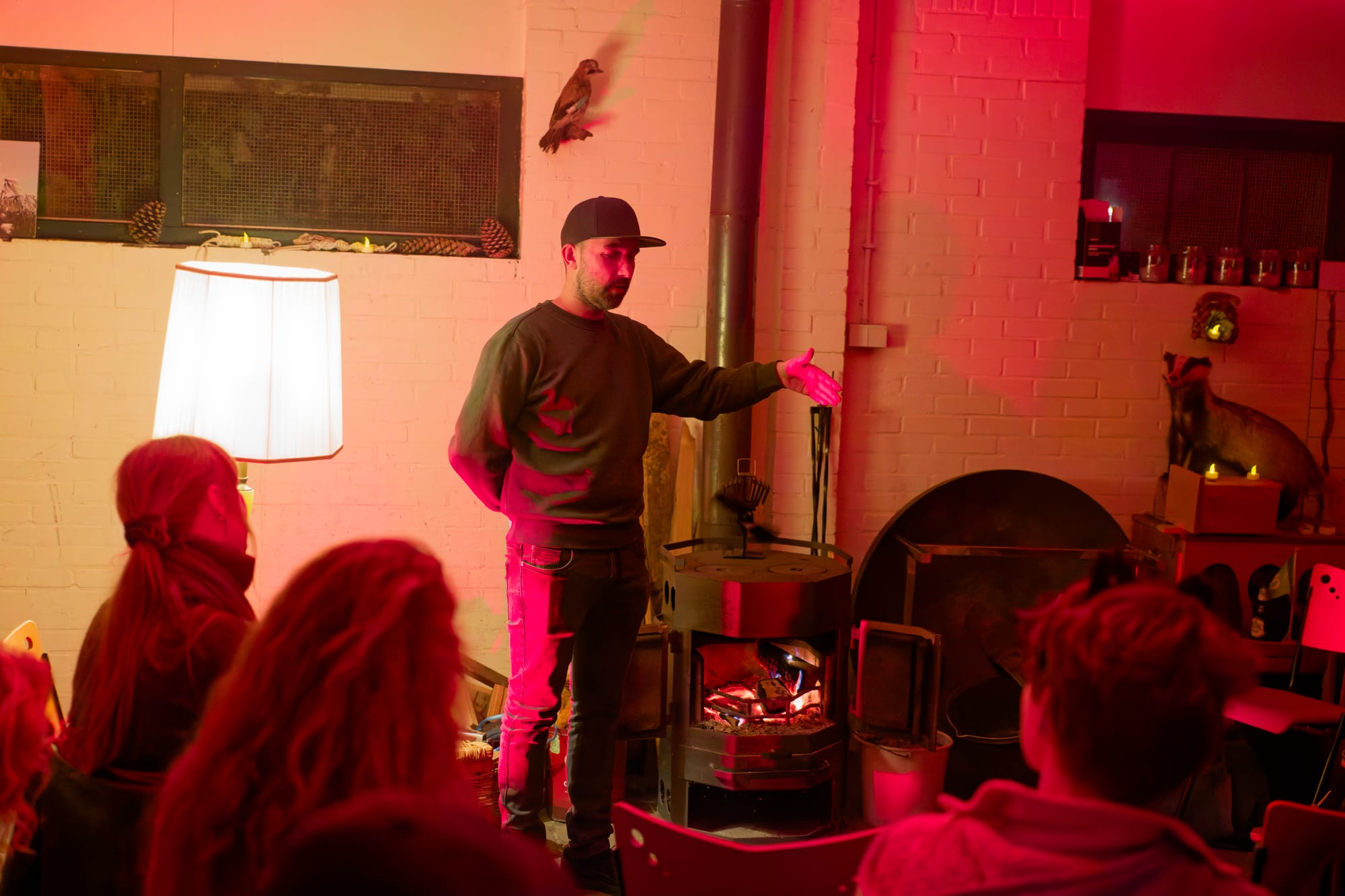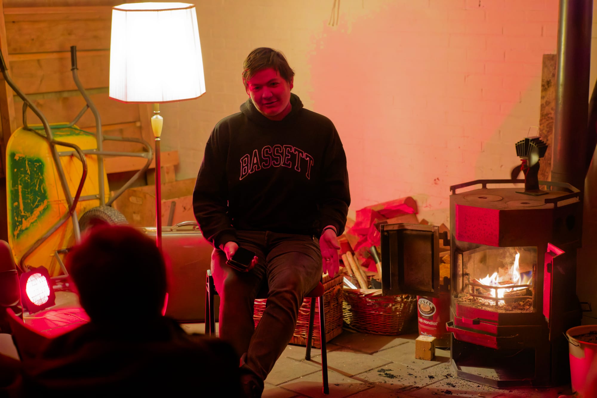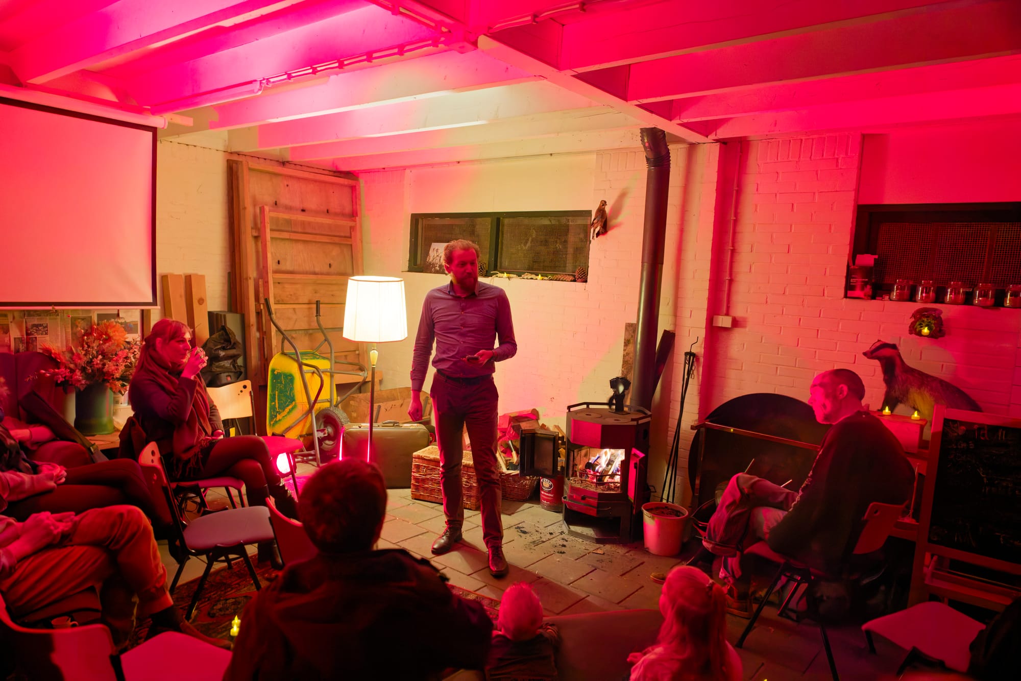 Koffie. Thee. Stormgeruis buiten. Binnen: gesprekken, gelach, lamplicht, vuur.