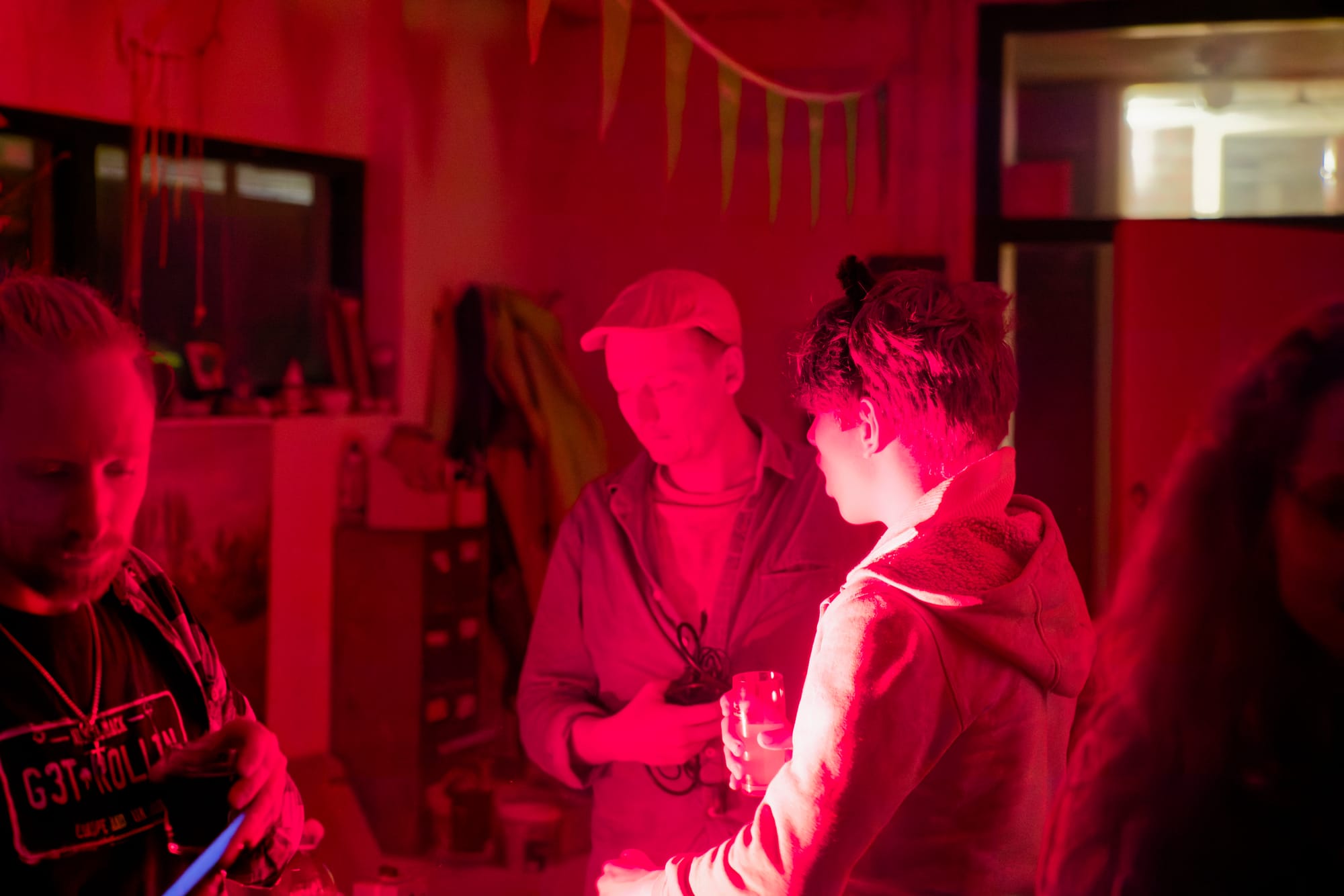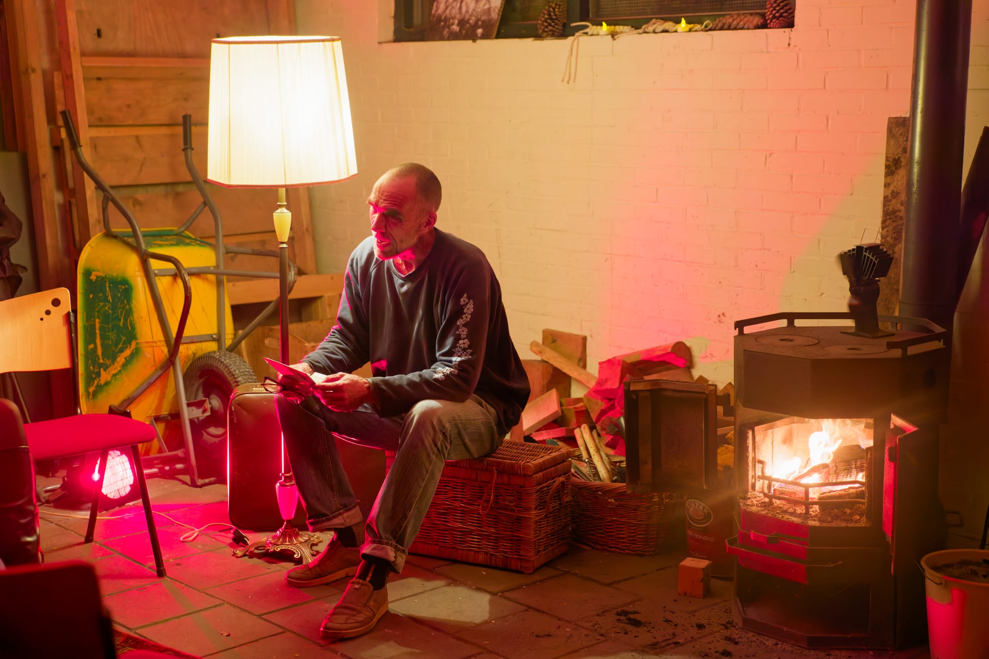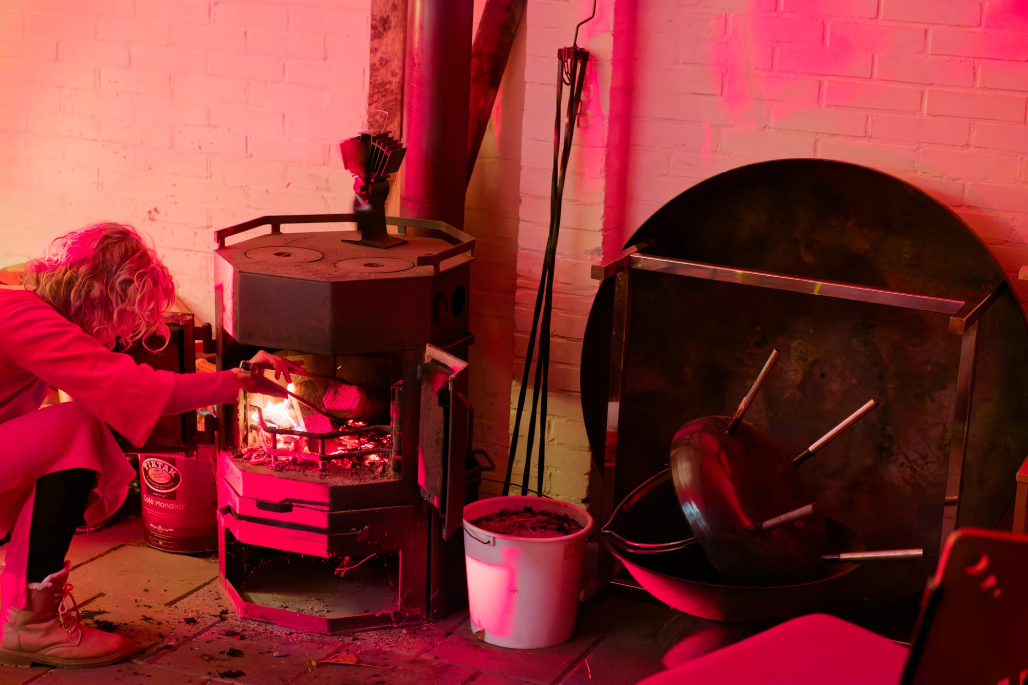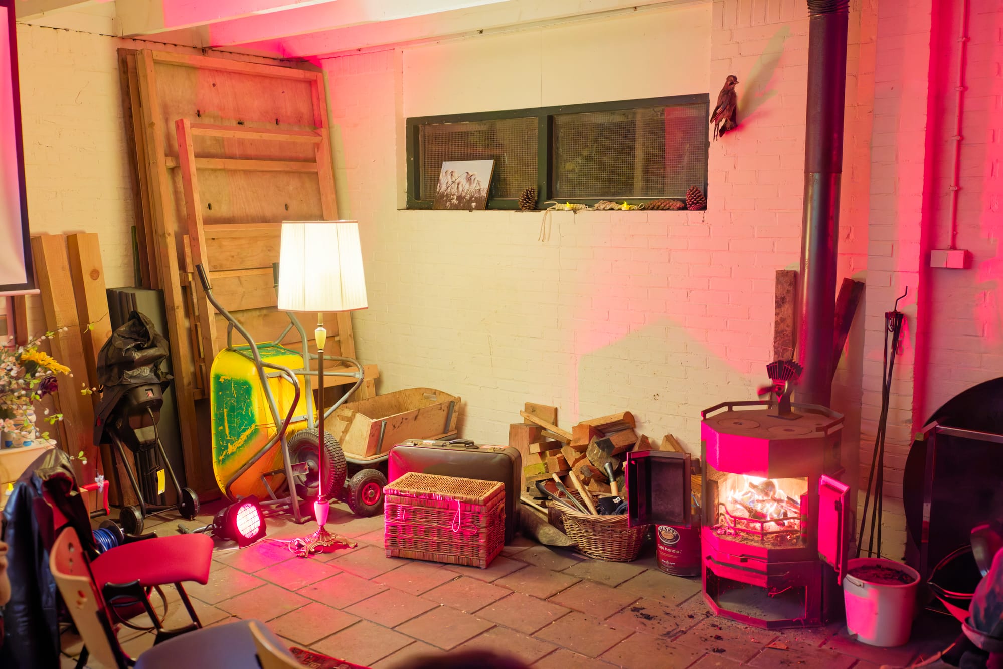 Koffie. Thee. Stormgeruis buiten. Binnen: gesprekken, gelach, lamplicht, vuur.