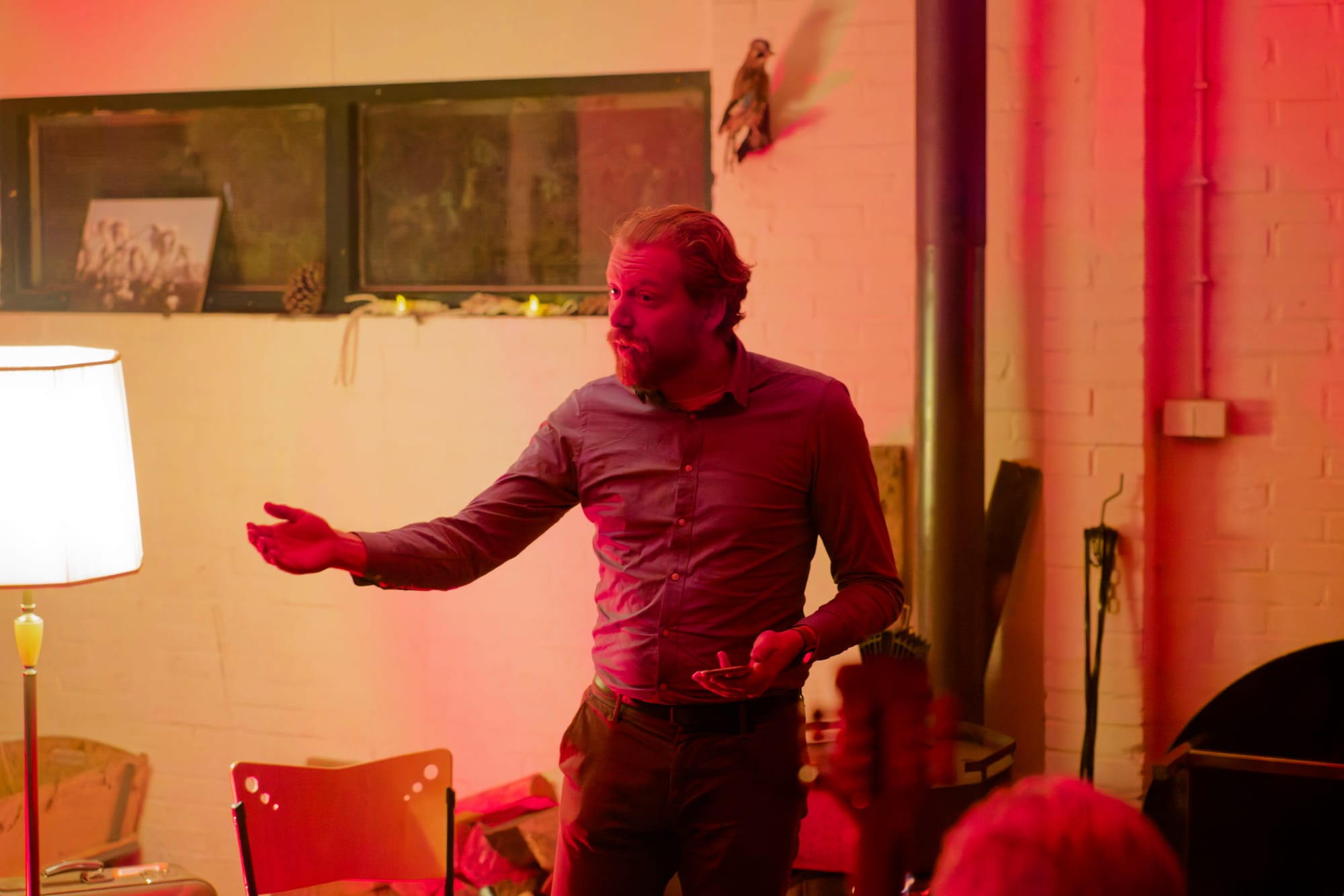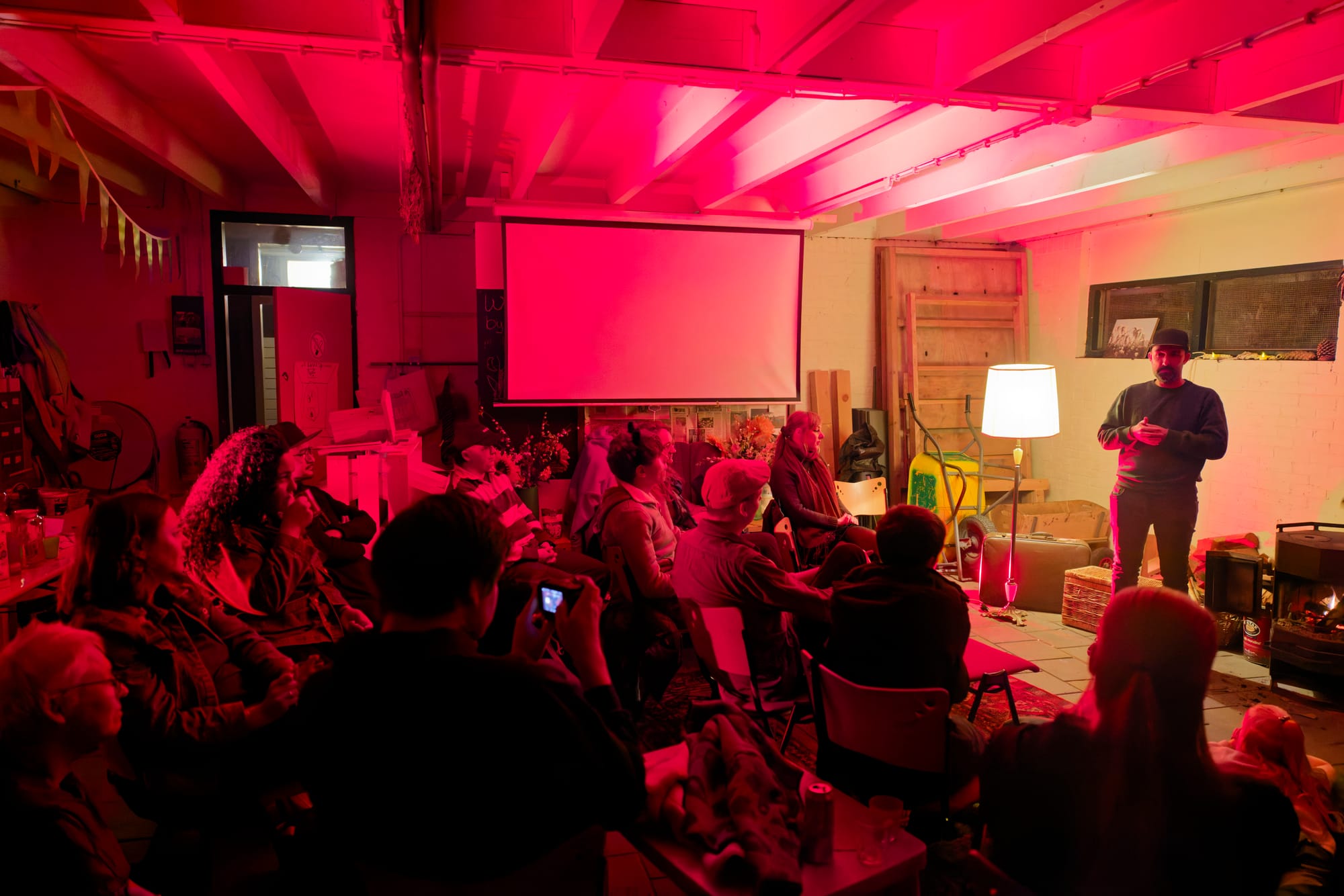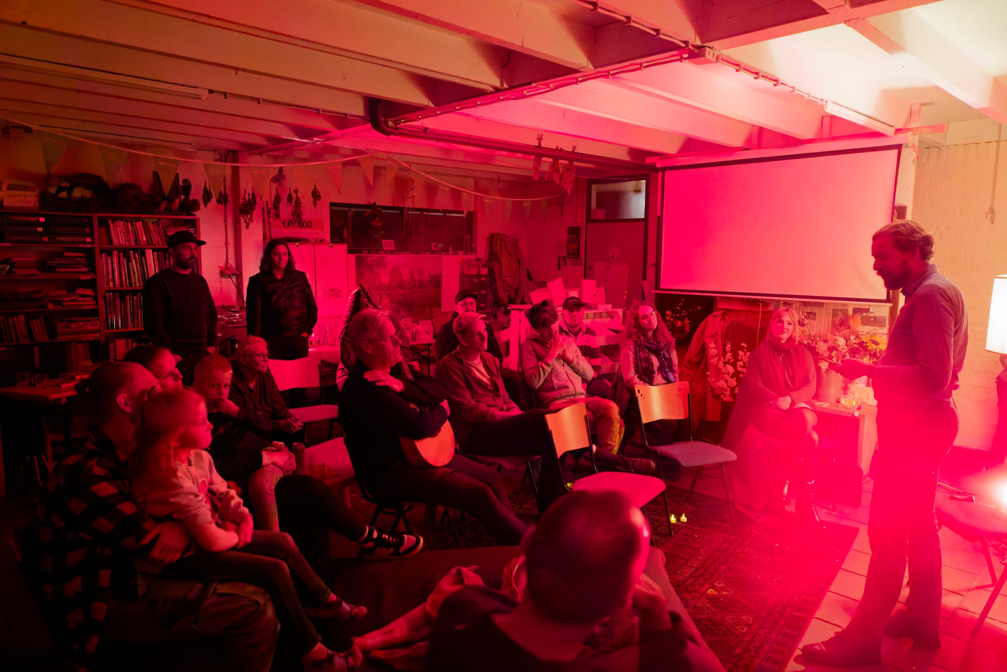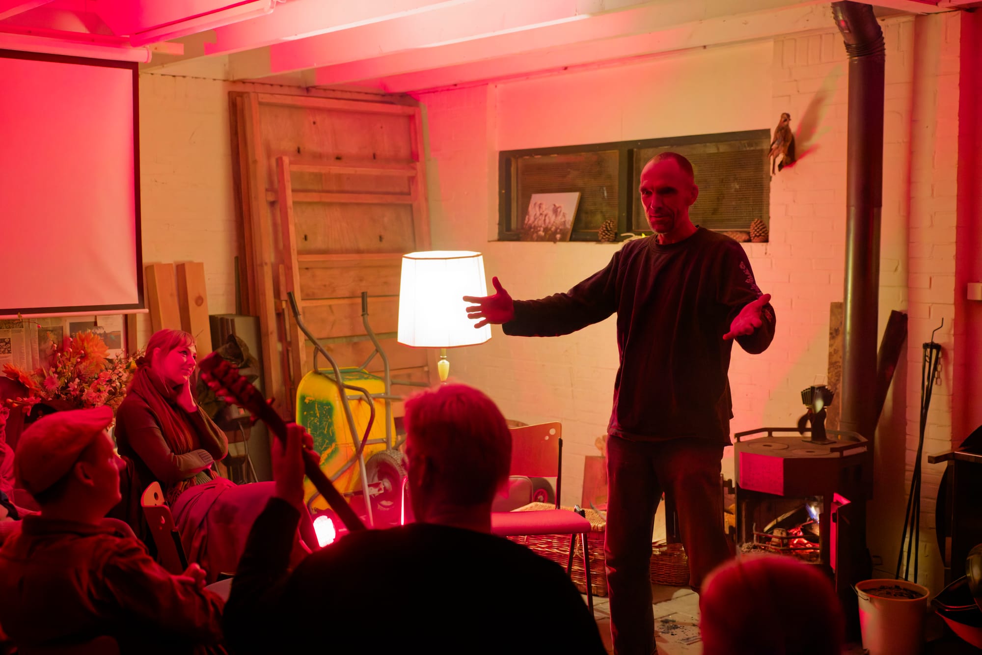 Zacht licht, knapperend hout, een oude lampenkap, en 21 dappere woordliefhebbers uit Hoogeveen én ver daarbuiten (Zwolle, Apeldoorn, Leeuwarden, Deventer!) maakten van de avond iets bijzonders.