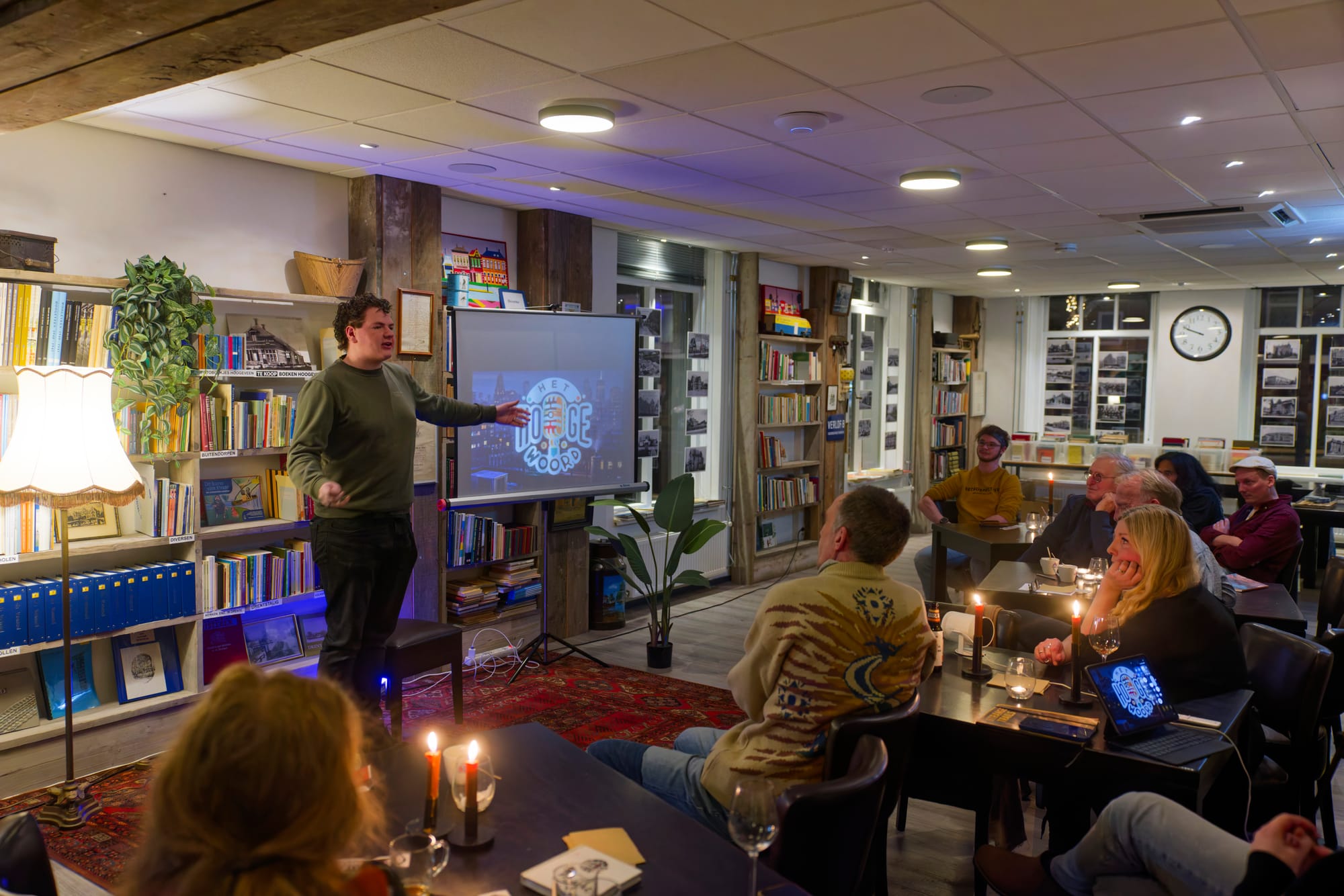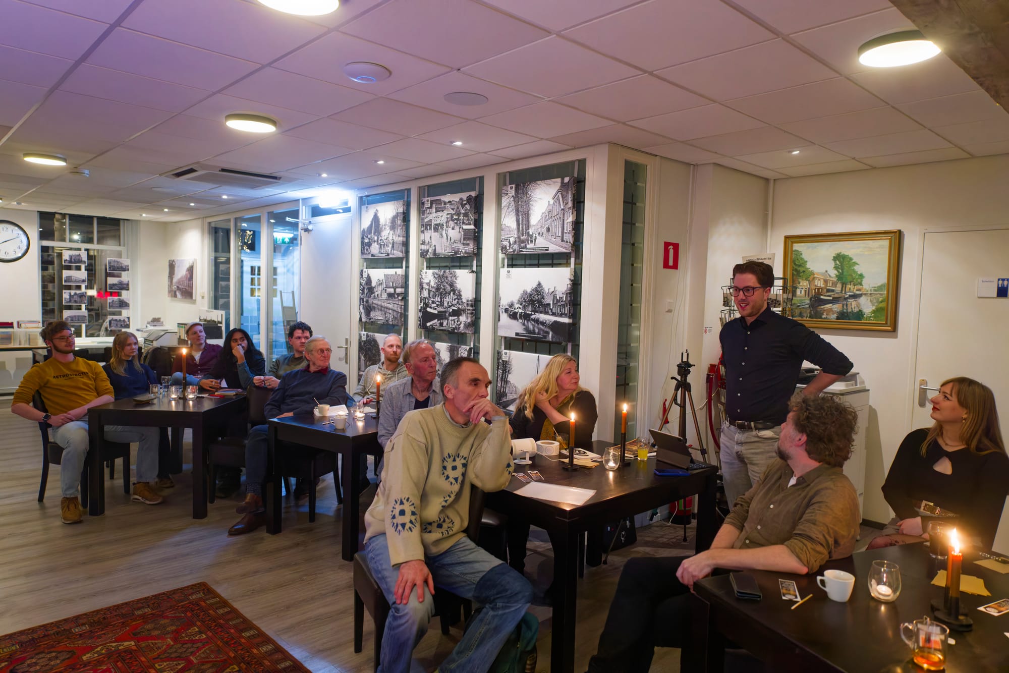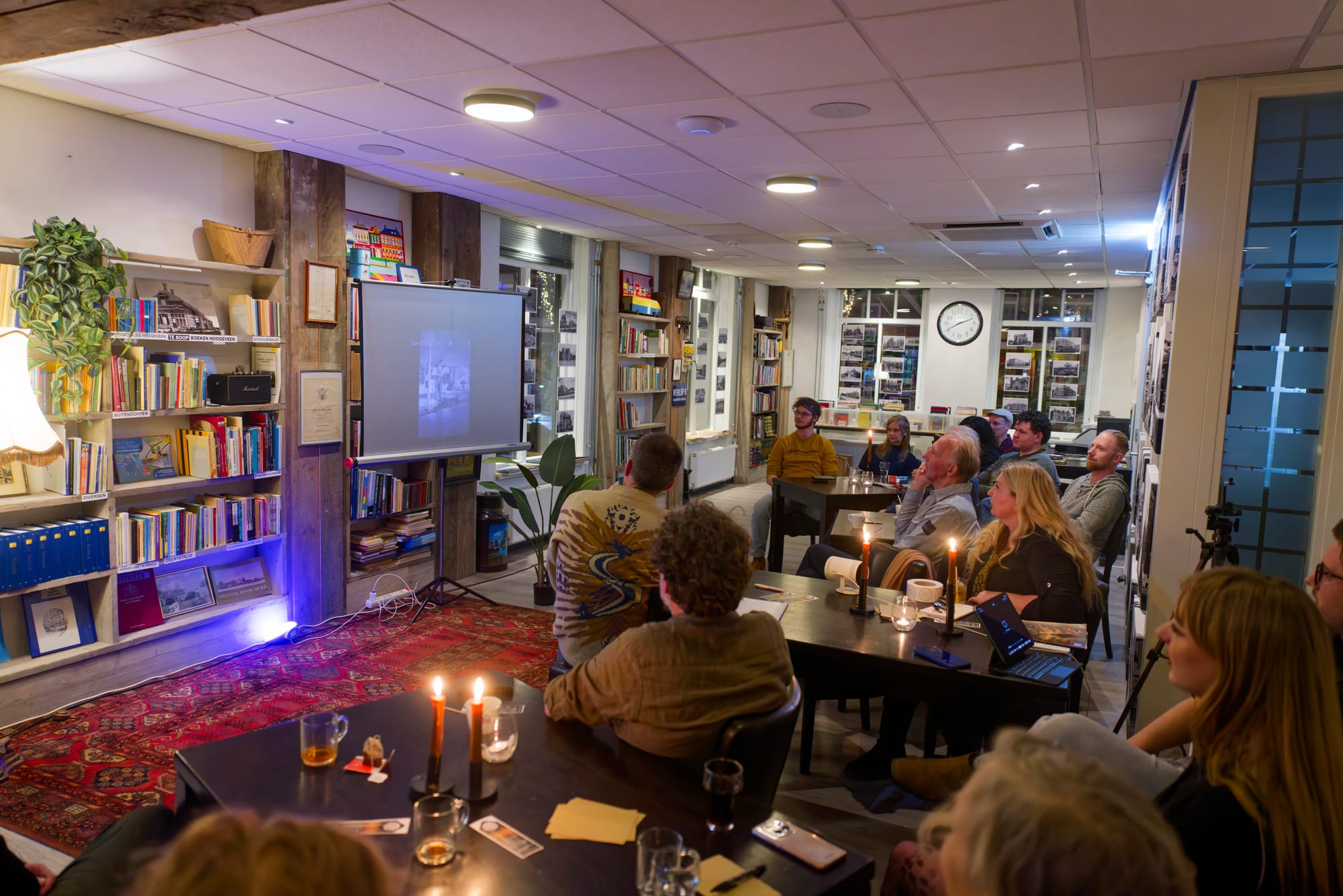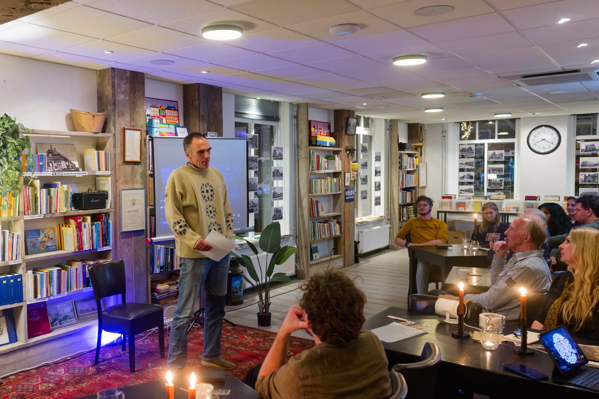 We trapten af met Tim, die een filmpje had gemaakt — een visuele gedicht-ervaring. Hij vertelde over het hoe en waarom, en daarna toonde hij het filmpje. Wij? Stil. Aandachtig. Ademloos.