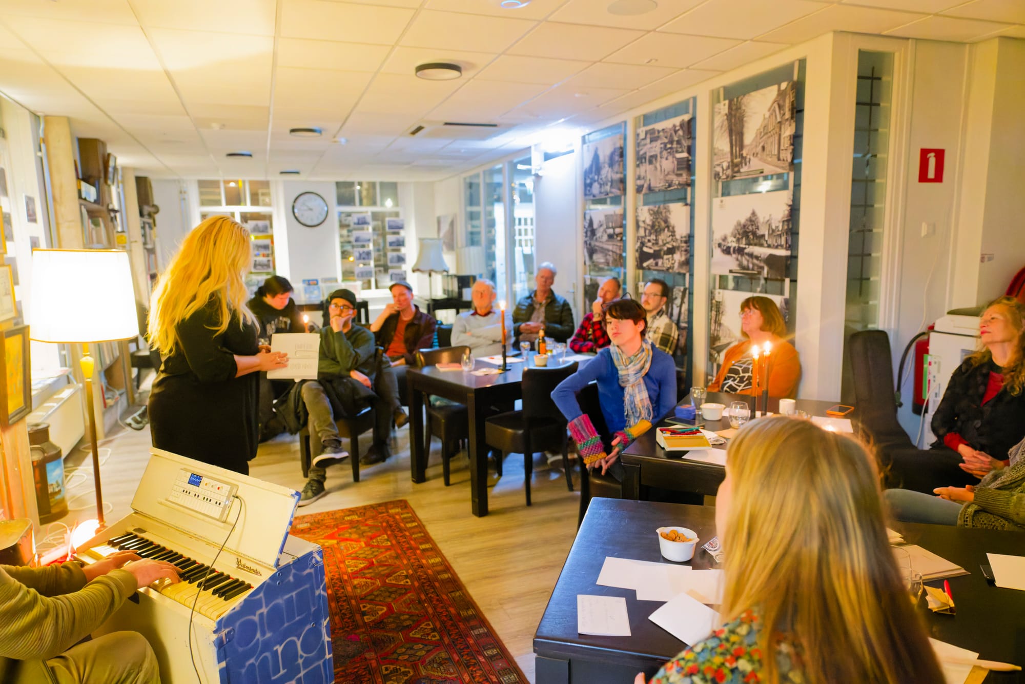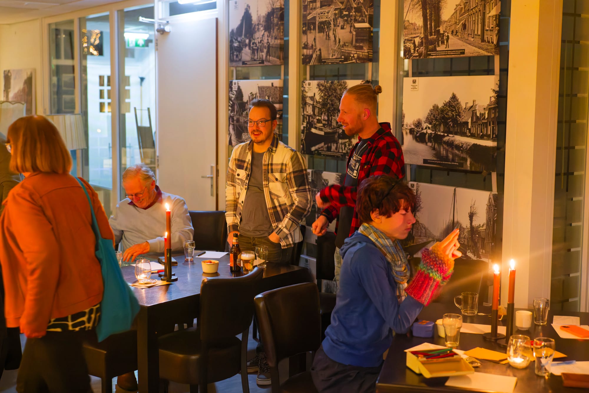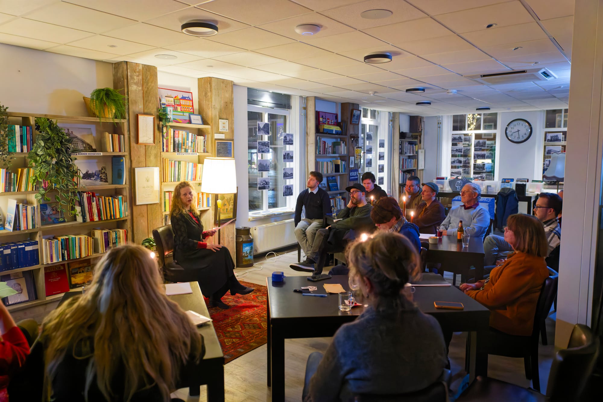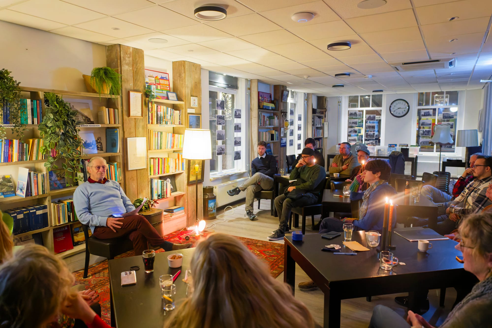 In de ruimte was ruimte. Voor gesprekken, thee, nieuwe connecties, en nagesprekken over haiku’s. Er werd gelachen, gehecht, geregeld, en verbonden. Alles wat Het Hooge Woord is.
