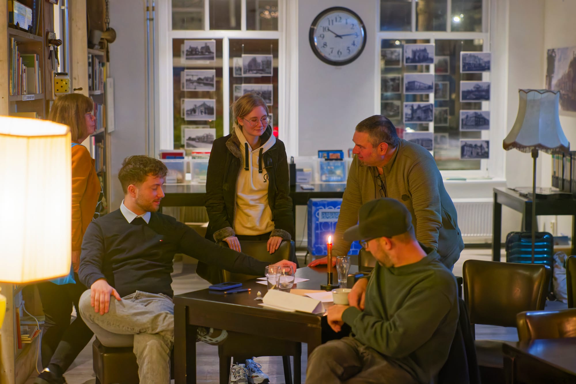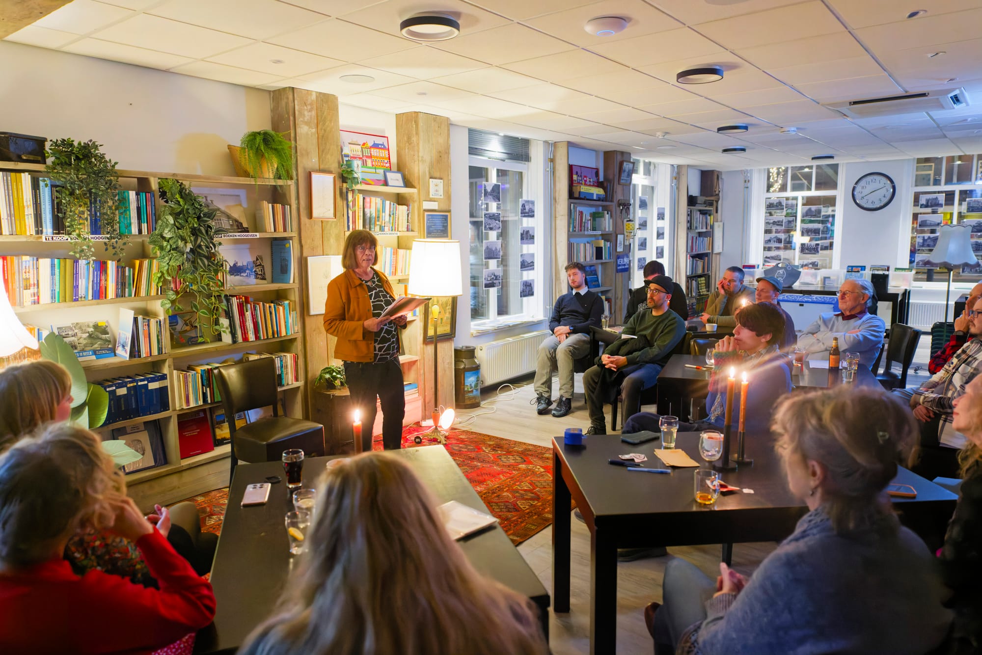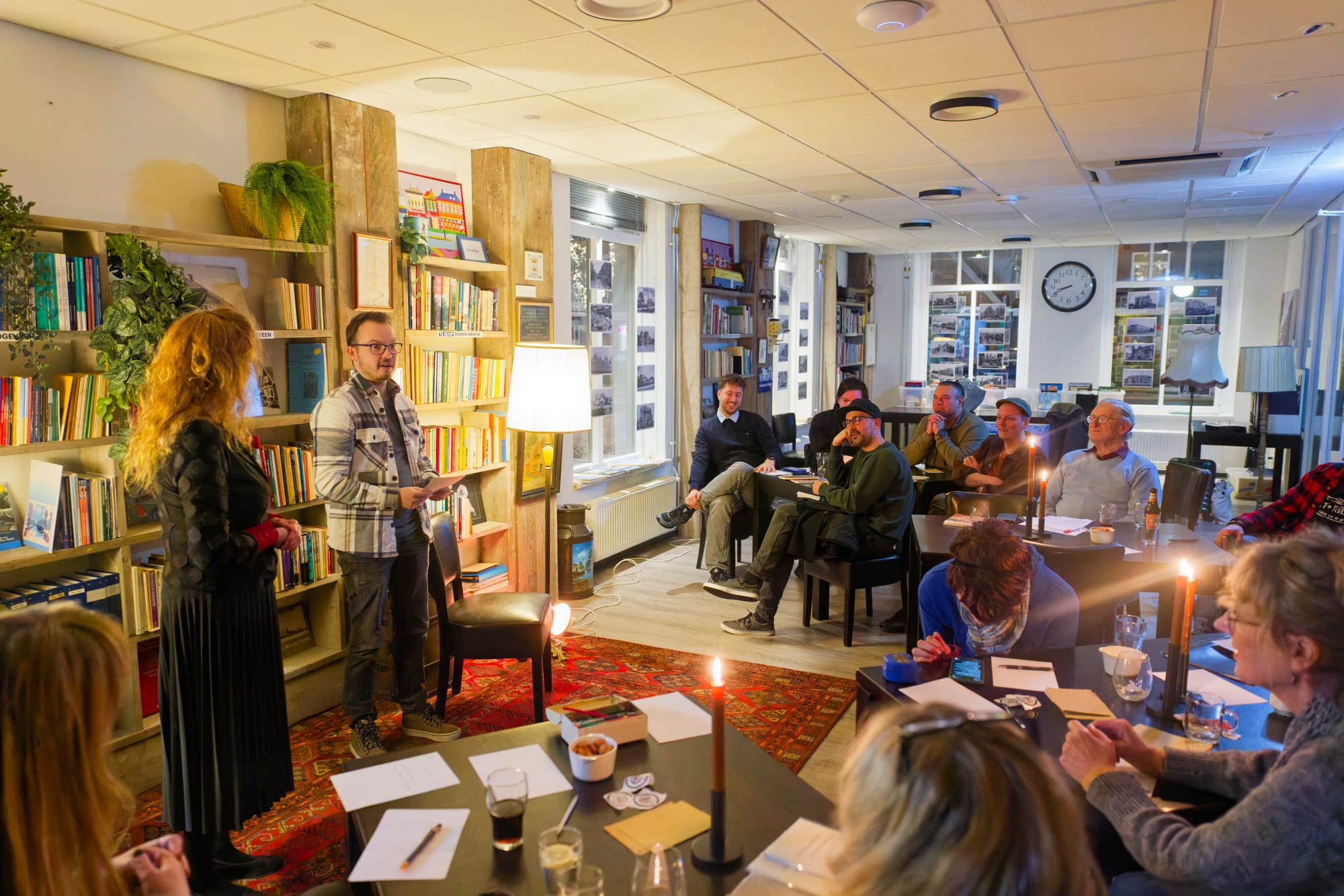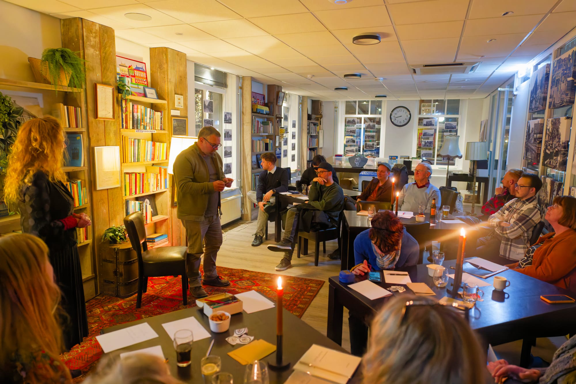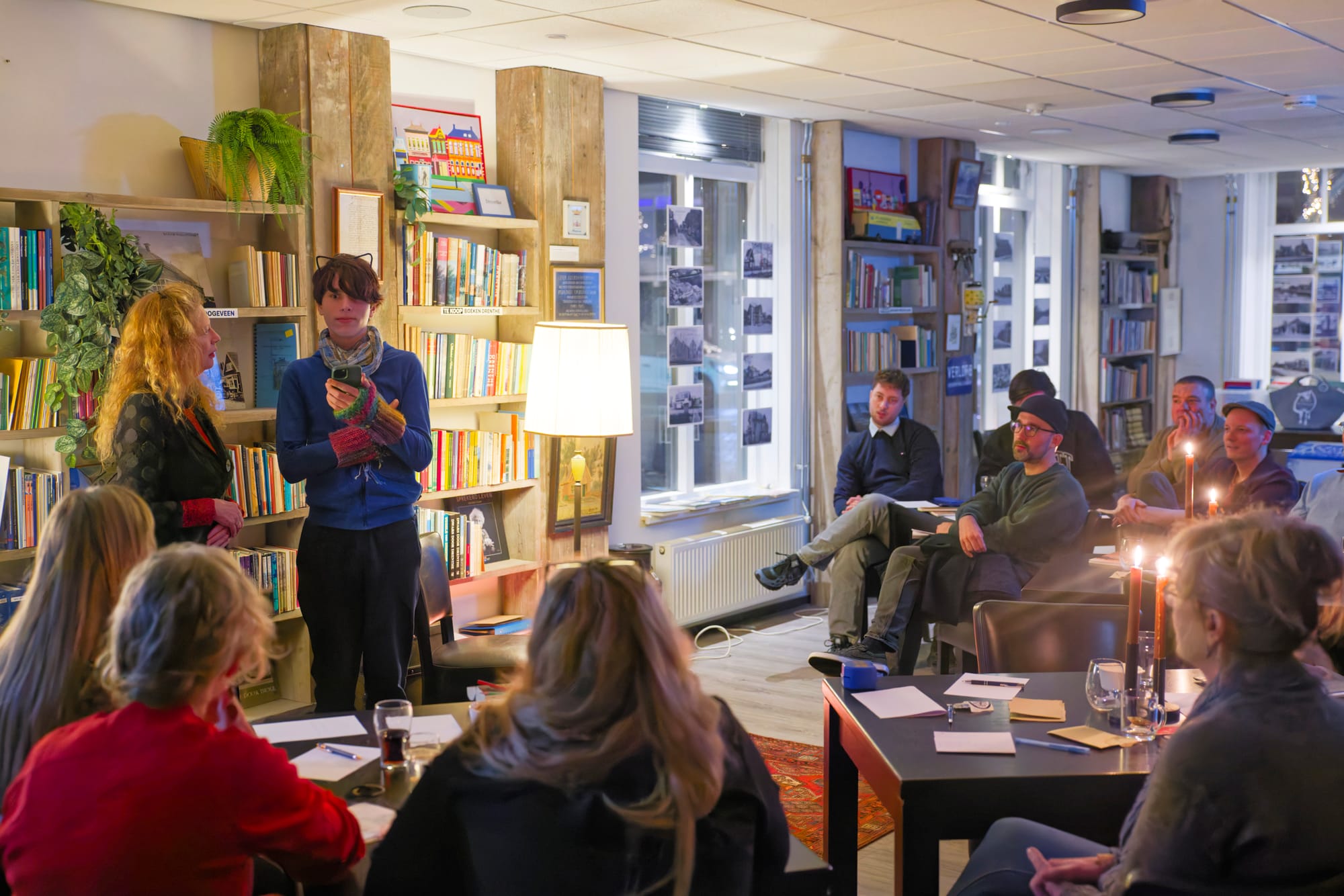 In de ruimte was ruimte. Voor gesprekken, thee, nieuwe connecties, en nagesprekken over haiku’s. Er werd gelachen, gehecht, geregeld, en verbonden. Alles wat Het Hooge Woord is.