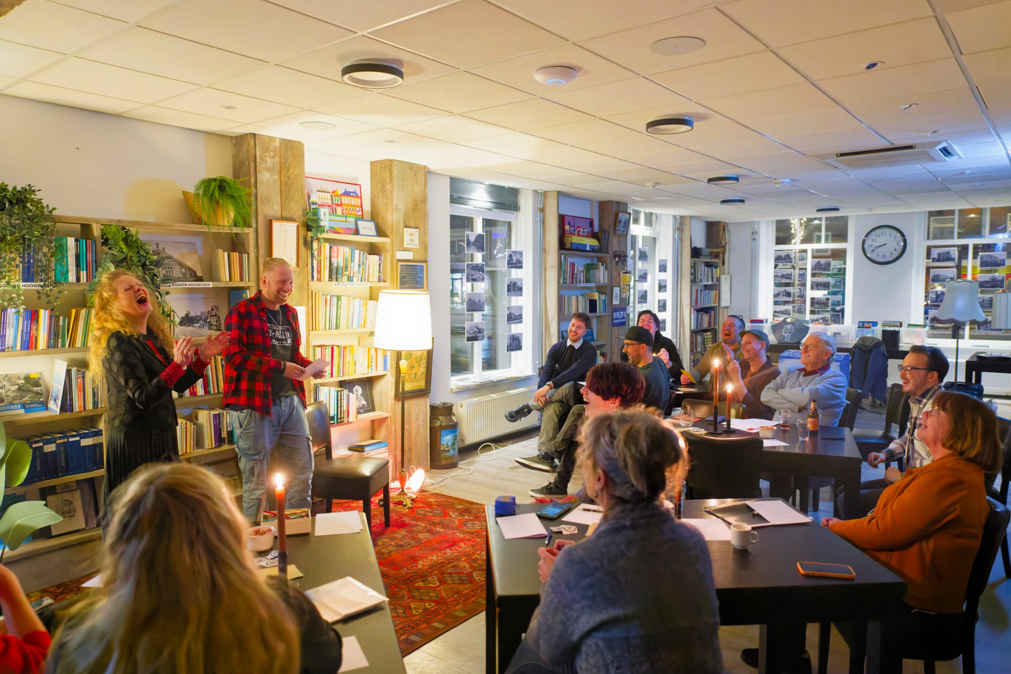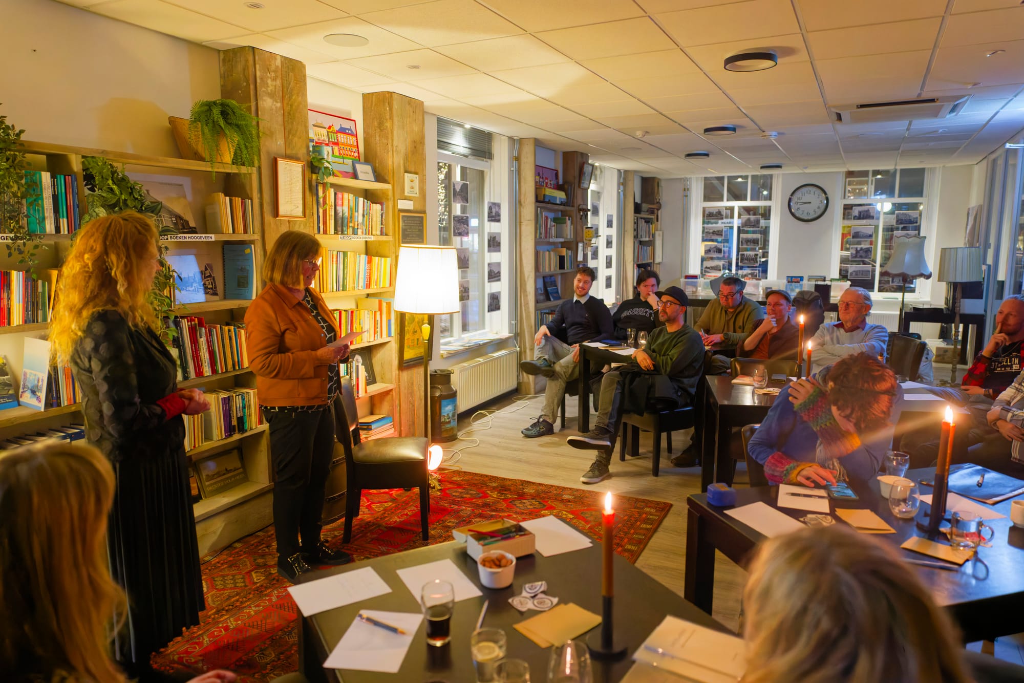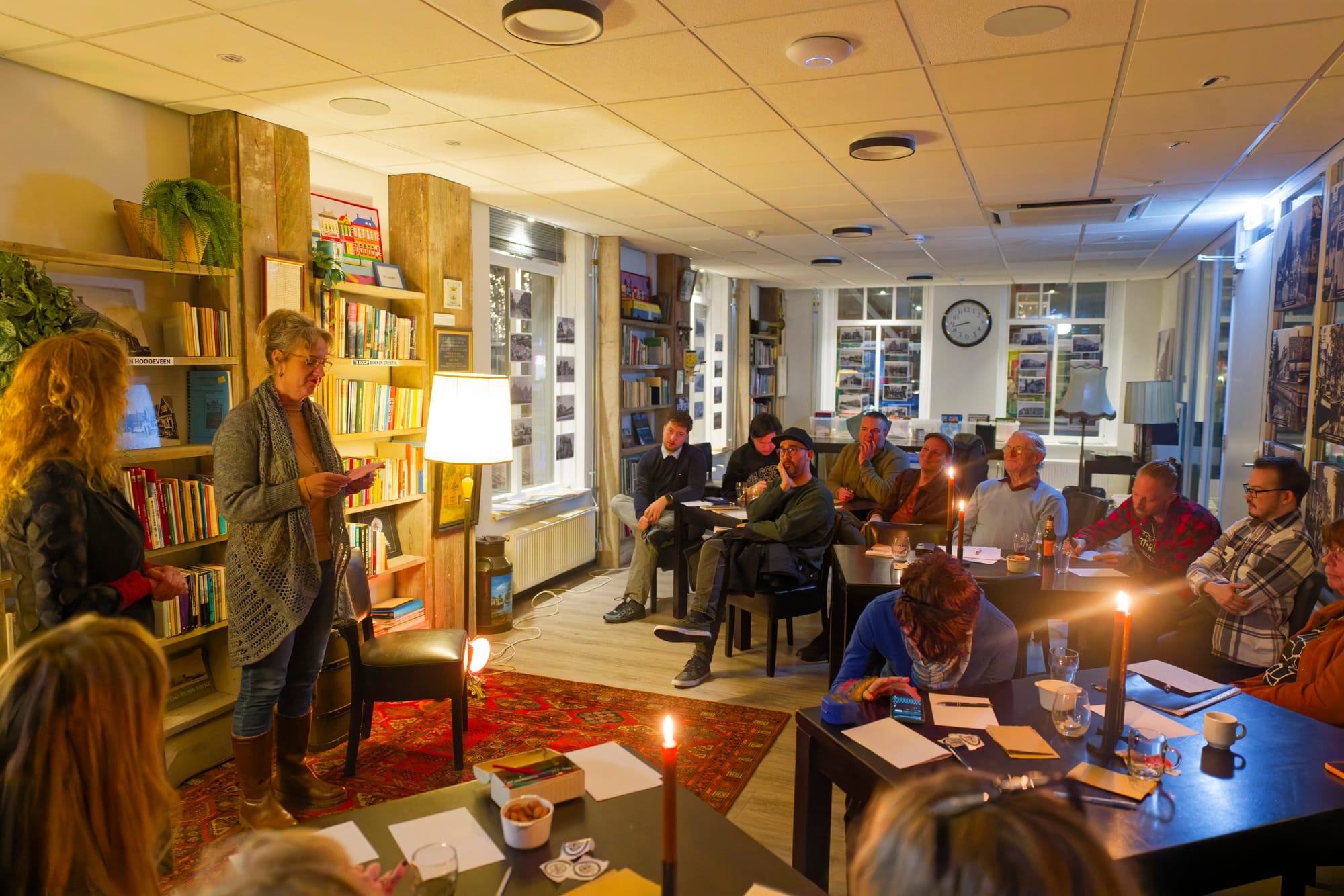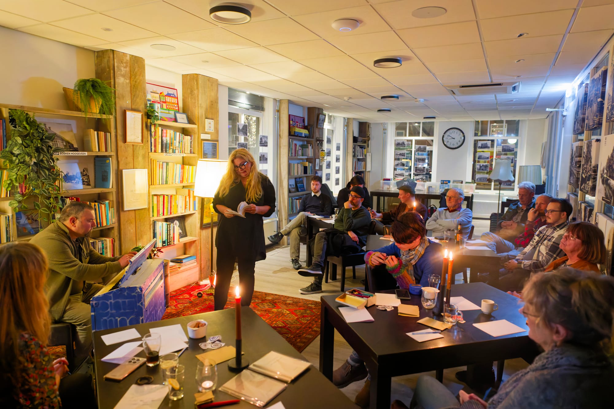 En toen kwam Ietje. Met een heerlijk verhaal over haiku’s, waarna ze papier en pennen uitdeelde aan iedereen – ja, echt iedereen schreef mee. Zelfs zij die nog nooit voordroegen deelden hun eerste woorden, soms aarzelend, soms stevig. Maar altijd vanuit binnen.