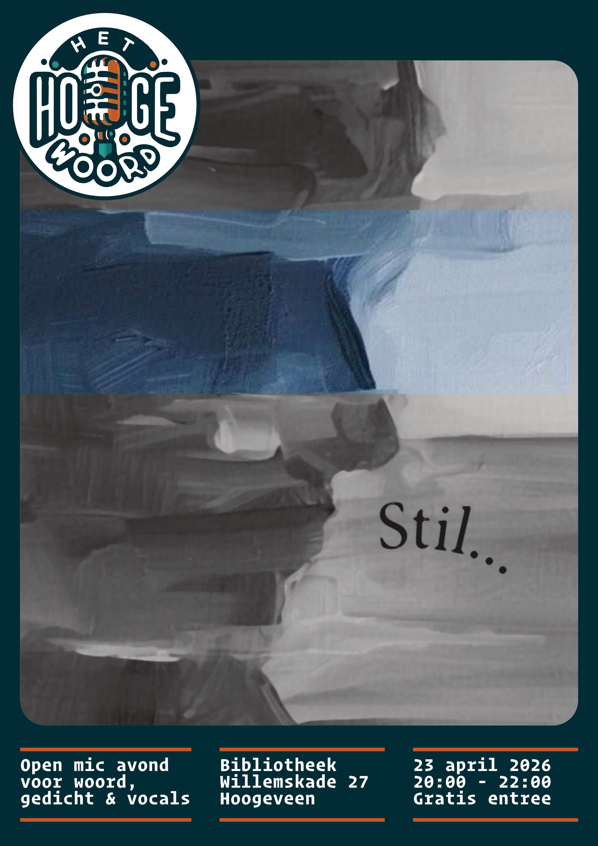 Hey, avonturiers van het onbekende woord en meesters van dappere zinnen in Hoogeveen! Nog een paar dagen en dan is het zover: "De Angst" neemt op 23 mei het podium van Het Podium over. Heb je je moed al verzameld? Dit is je kans om die innerlijke angsten te trotseren en ze in iets krachtigs te transformeren. ๐ช